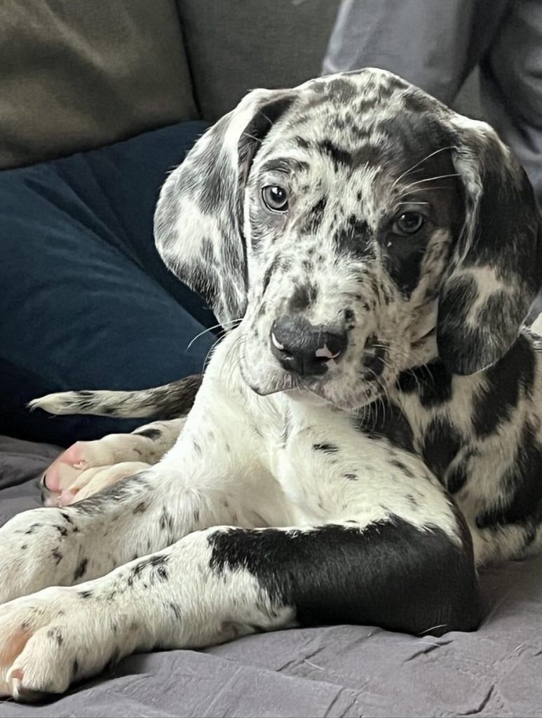 Athena is in search of her forever home, along with her five littermates! Athena is one of the six Great Dane puppies recently surrendered to Anchor Paws Rescue. Athena is approximately 10 weeks old. As a typical puppy, Athena is a happy-go-lucky girl who can make friends with anyone! She loves playing with other pups and is the perfect addition to just about any family. Athena spends her spare time taking naps in her favorite bed, cuddling on the couch with her foster mom and sun bathing in the backyard. Athena and her litter mates would do best with a family that has large-breed experience and a fully fenced-in backyard so they can stroll and smell the roses untethered.