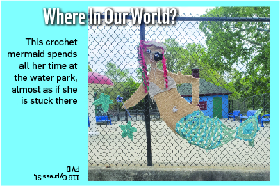 This crochet mermaid spends all her time at the water park, almost as if she is stuck there Answer: 116 Cypress St, PVD