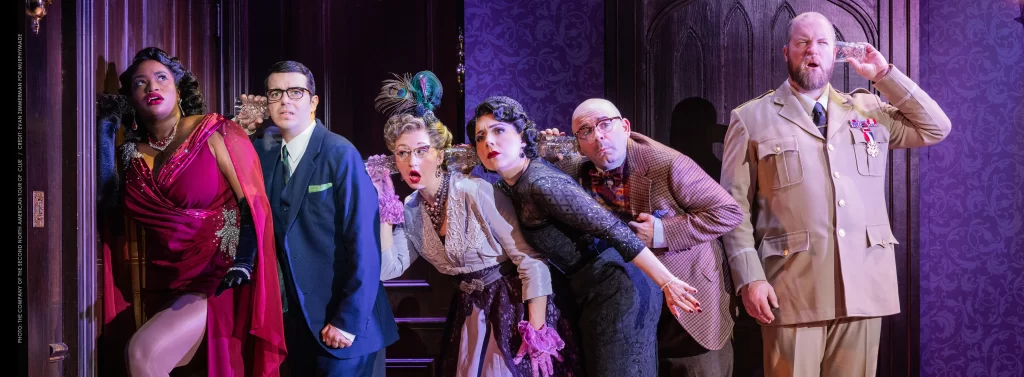 On a Broadway tour stop at the Providence Performing Arts Center, the show drew heavily on the 1985 black comedy film featuring a brilliant ensemble cast that included comedy legends Tim Curry and Madeline Kahn. In 90 short minutes, with no intermission, the production transports audiences to the beginning of the Cold War Era and McCarthyism, as familiar game characters Mrs. Peacock, Mr. Green, Miss Scarlett, and others come to life.