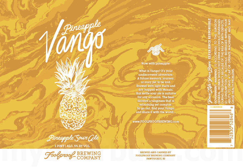 pineapplevangoFoolproof Brewing keeps the new brews coming: Vango, a “hoppy sour ale” (5% ABV), recently debuted in 16-ounce cans and on draft; a variant, Pineapple Vango, will be ready for sipping in June.