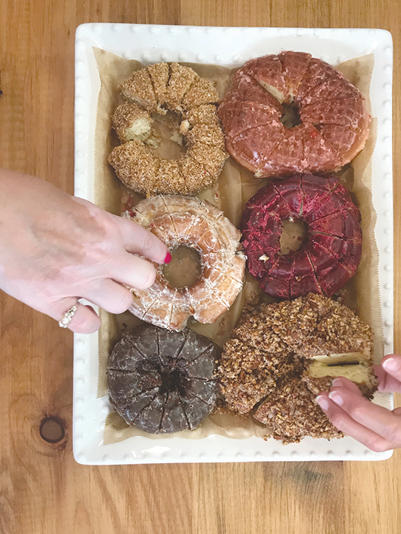 It didn’t hurt, either, that the kitchen itself was move-in ready, from state-of-the-art hoods to spatulas that were left behind. Not only that, the layout was particularly conducive to doughnut making. “It’s as if they’d built it just for us,” Lastrina said, speaking of how one room flows right into another: from proofing in a room with a mixer large enough to fit a full-grown human, to frying in one of the many fryers, to glazing in the finishing room: a windowed room through which patrons can observe artisans putting the final touches on their product.
