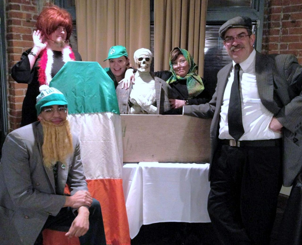 I arrived at 123 Empire Street, with my pink sparkly note pad in hand, and entered the building. Motif has sent me on some pretty interesting events to cover, but this was by far the most interesting. I was immediately embraced by a wailing man at the door. He threw his arms around me and theatrically cried “I haven’t seen you in years!” I knew it was all a skit, but for a moment I jogged my memory to make sure we hadn’t met before. “Come give your condolences to Grandma!” cried the oversized 4th grader in green pajamas, as she took my hand in hers and dragged me to the woman dressed in black and crying at the top of her lungs. She threw me into her arms and I hugged her as if she had really lost a loved one, forgetting it was a part of an interactive murder mystery dinner theater- Murder On Us.