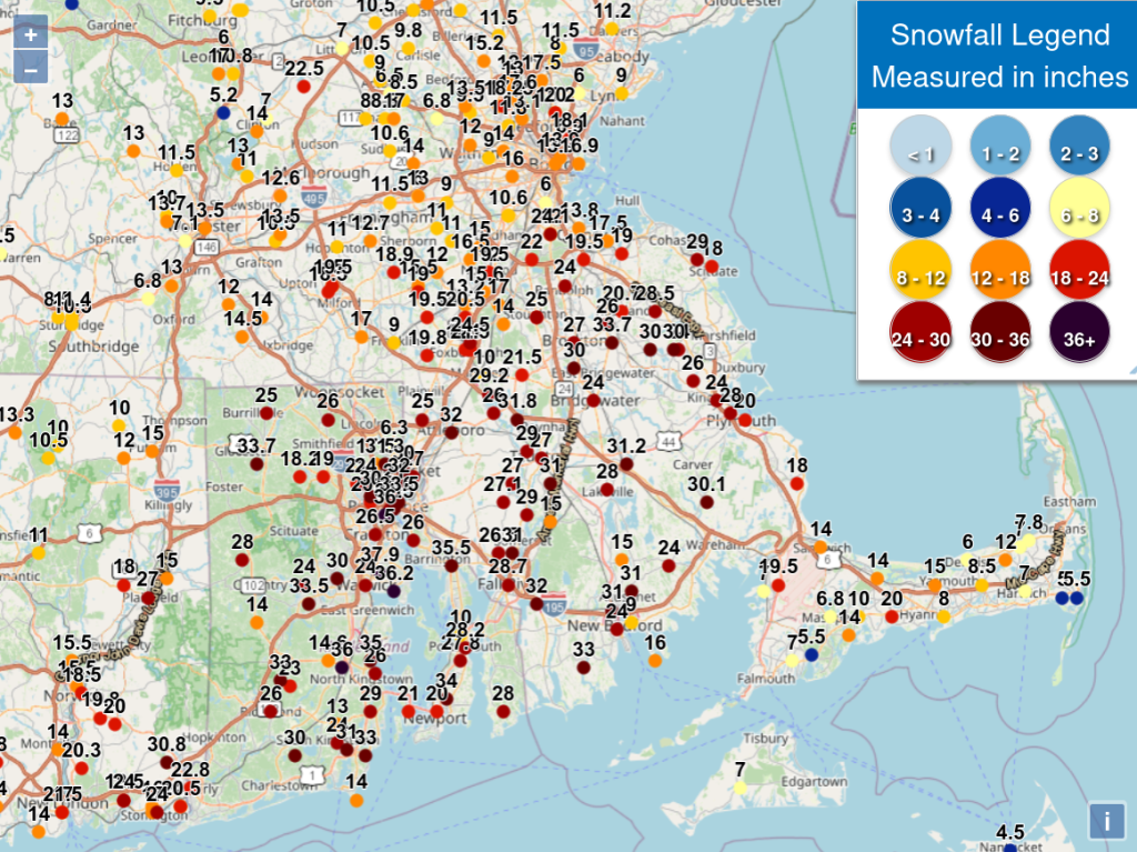 Snow accumulation at TF Green Airport reached 37.9 inches, shattering the all-time record of 28.6 inches set during the legendary Blizzard of 1978.