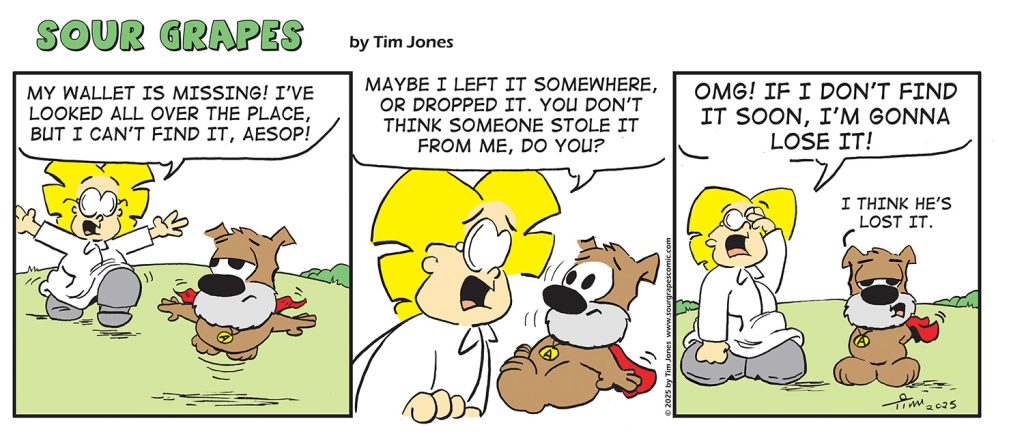On Posted on July 30, 2025July 29, 2025 by Tim Jones to Comics, Sour Grapes Comics Sour Grapes: August A 2025 By Tim Jones on July 30th, 2025 More Posts by The Author: Sour Grapes: December B 2025Sour Grapes: December A 2025Sour Grapes: November B 2025Sour Grapes: November A 2025Sour Grapes: October B 2025