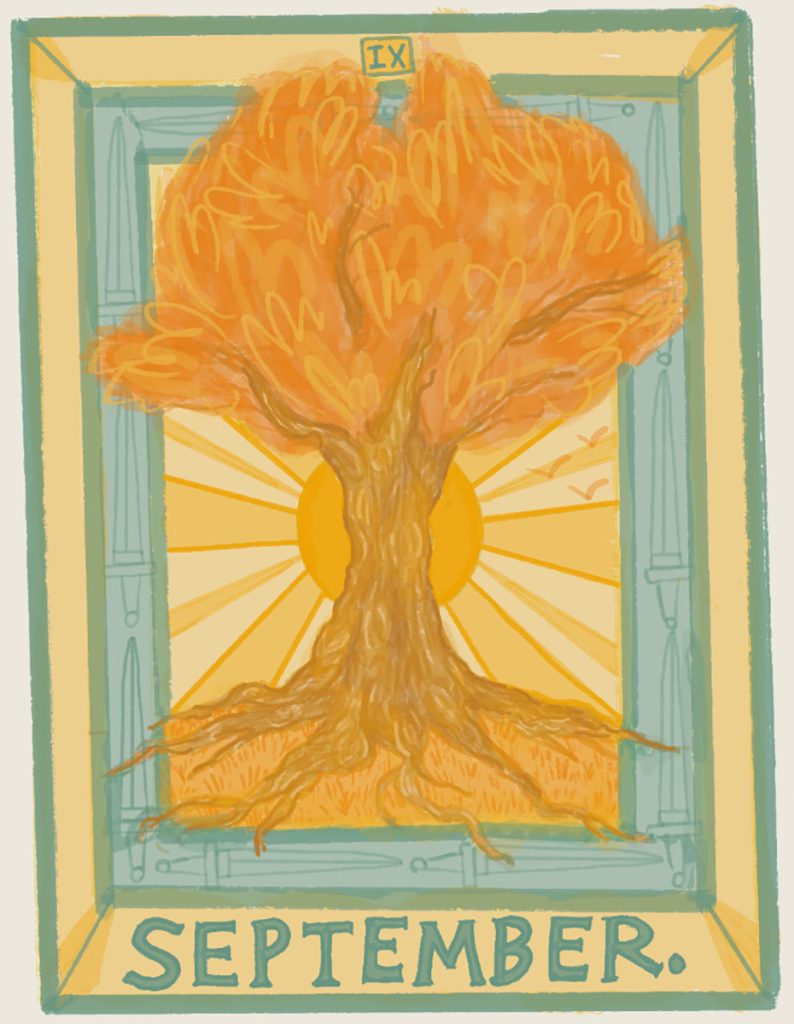 First, The Hermit corresponds to the zodiac sign of Virgo, where the sun will be from August 22 – September 22, making it a particularly timely card for the month and emphasizing the magic of Virgo qualities in the collective. Second, The Hermit is number nine in the major arcana of the Tarot, just as September is the ninth month of the year. Third, The Hermit is the tarot card associated with 2025 numerologically, as 2025 is a collective nine year (2+0+2+5 = 9). Three is the number of the magician, and nine is the number of completion, mastery, and evolution. There is so much possibility here. September is a big picture point of reattuning to our values and visions, as well as a tender, boots-to-the-ground threshold of remaining invested in the present work. September is the perfect month to weave it all together, so to speak. Reach down into your core and prioritize time to integrate what you’ve been learning so far this year.