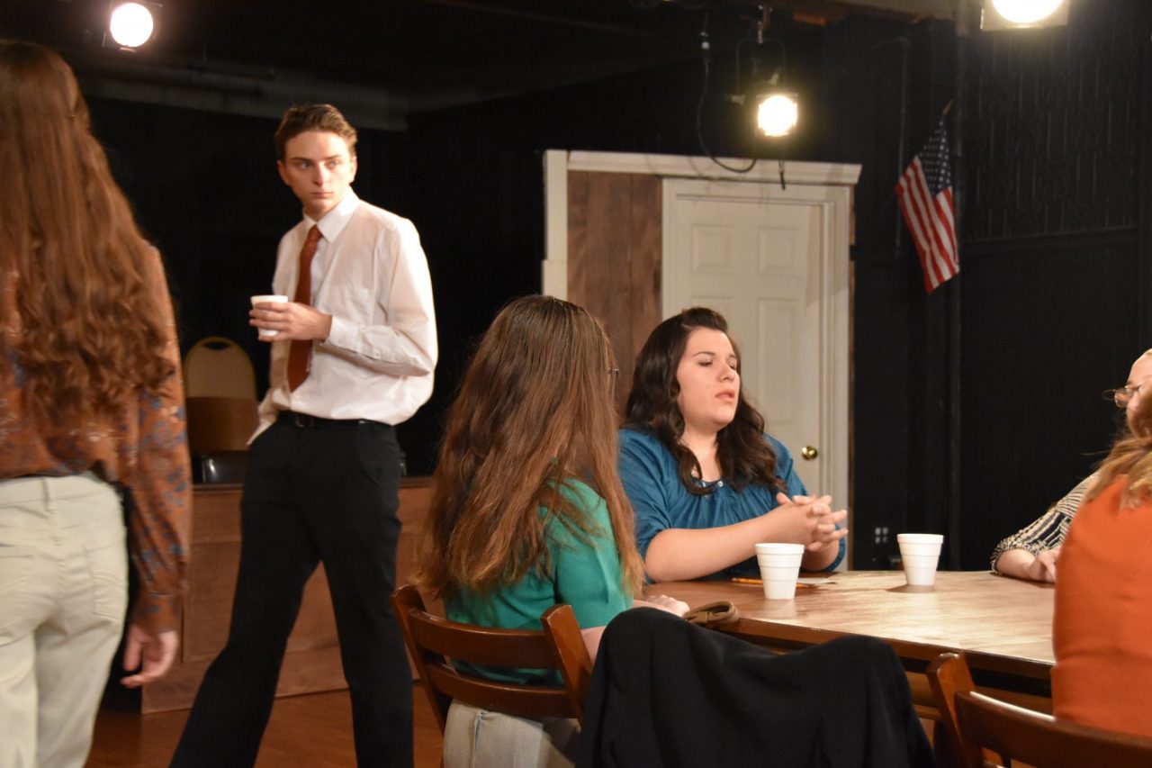 bc1   Reginald Rose’s granddaddy of all courtroom dramas, Twelve Angry Jurors, is quite an interesting acting and staging challenge for even the most mature of groups to tackle. Originally airing on television in 1954, and adapted by Sherman Sergel, the script is more commonly known as Twelve Angry Men. My memories of the play and the motion picture are starkly claustrophobic visions of a sweatbox filled with cigarette smoke and the bluster of 12 white men fueled by entitlement and testosterone.