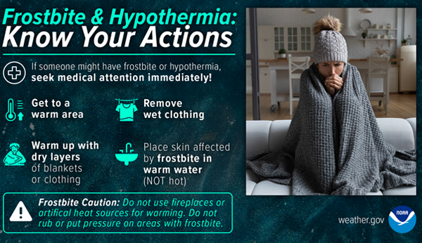 The National Weather Service (NWS) states, “An Extreme Cold Warning is issued when extremely dangerous cold conditions or wind chill values are expected or occurring. If you are in an area with an Extreme Cold Warning, avoid going outside. If you have to go outside, dress in layers, cover exposed skin, and make sure at least one other person knows your whereabouts. Update them when you arrive safely at your destination.” The criteria for “extreme cold” vary by location and are defined by the local NWS office.