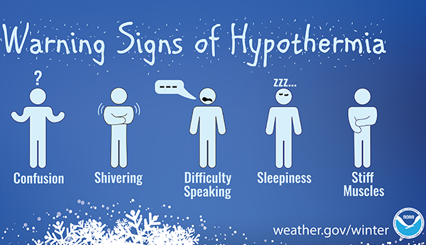 According to the National Safety Council, exposure to cold can cause frostbite, which is the injurious freezing of layers of skin, even if covered by clothing, mainly on the fingers, toes, nose, ears, cheeks and chin. Exposure to cold can also cause hypothermia, which is the lowering of core body temperature below 95°F, leading to organ failure and death.