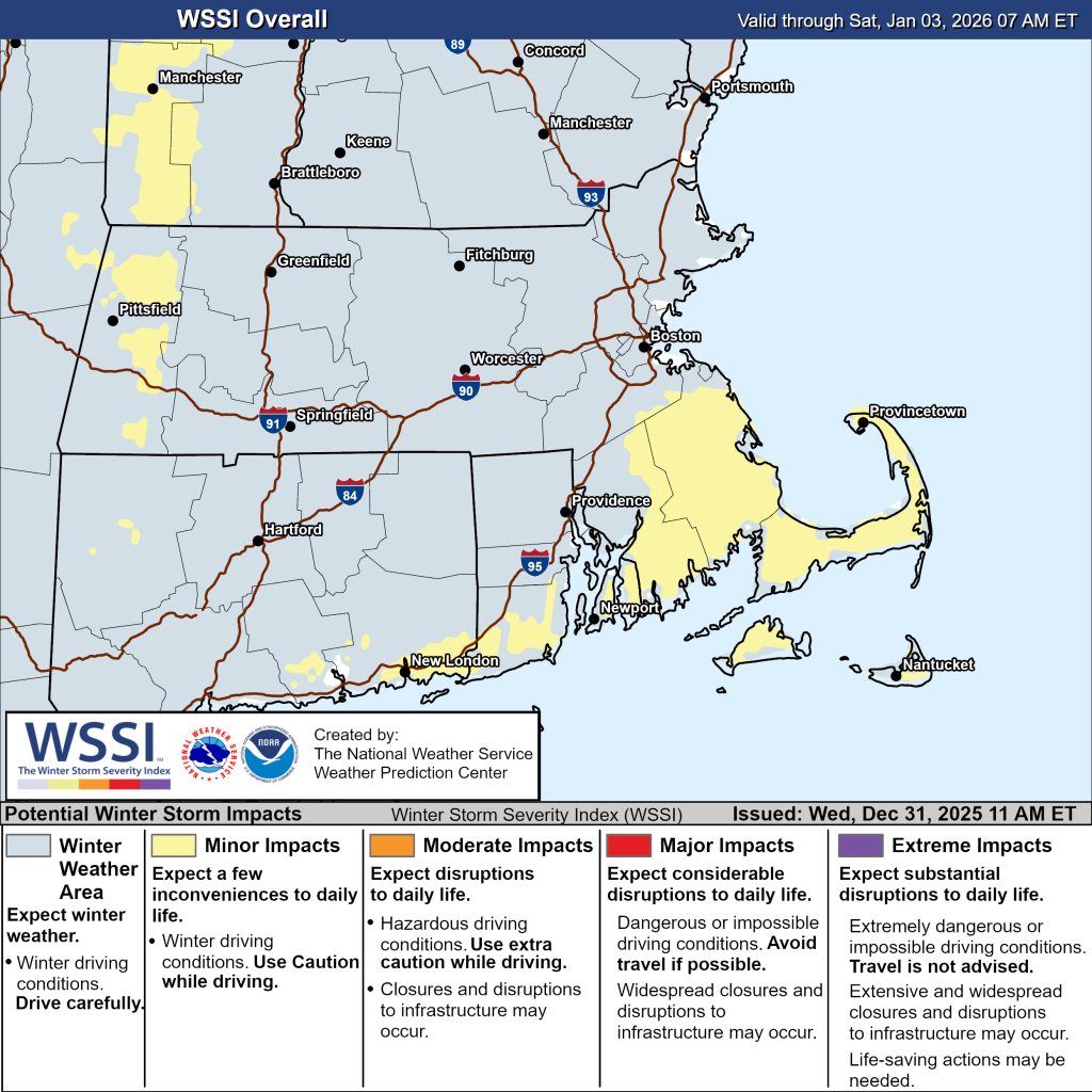 Winter Weather Advisory in effect from December 31, 07:00 PM EST until January 1, 01:00 PM EST