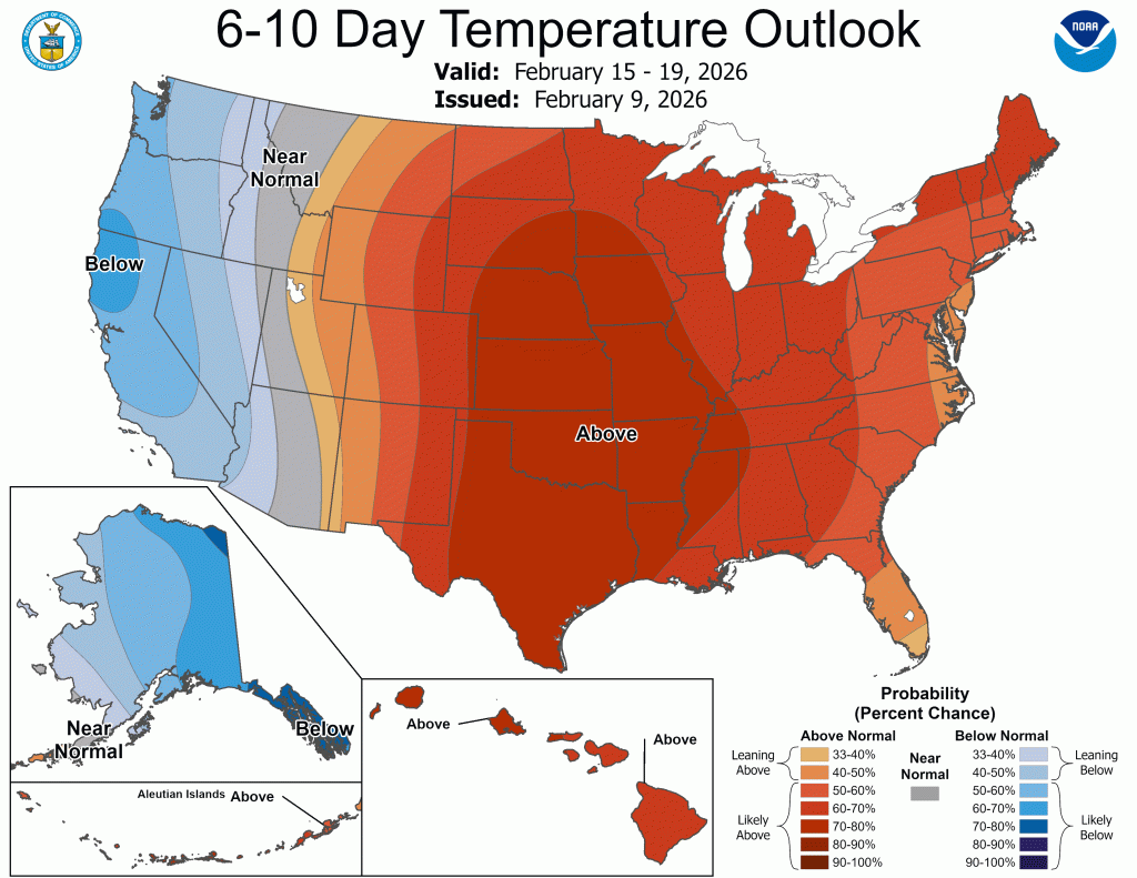 Bitterly cold temperatures of the past few days will return to slightly above seasonal normal, with afternoon highs about 35°F and overnight lows about 20°F.